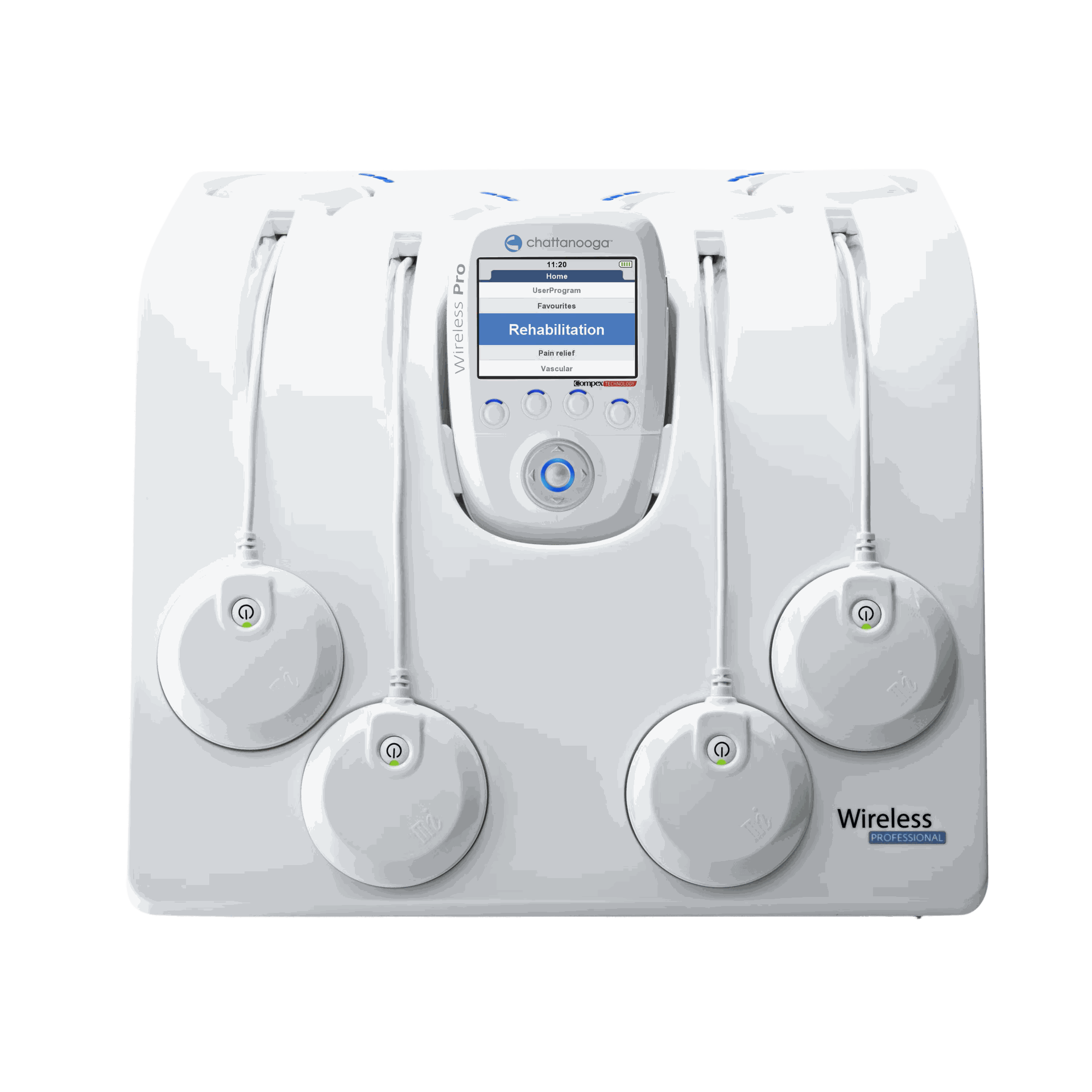 WIRELESS PROFESSIONAL 4CH STANDARD es un estimulador inalámbrico de 4 canales desarrollado para tratar indicaciones estándar de electroterapia (Pain & Standard Rehab y Vascular).