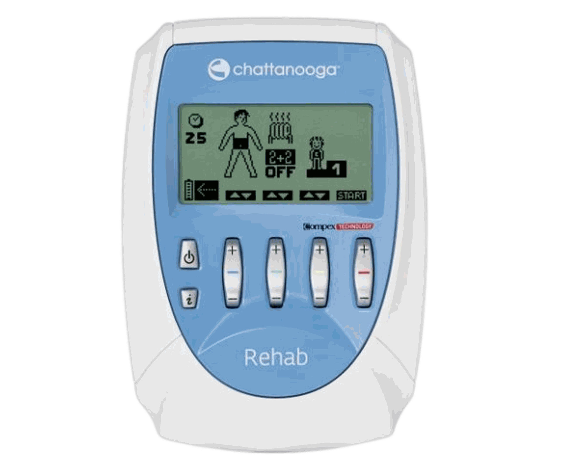 Un estándar para Rehabilitación REHAB es un estimulador de 4 canales desarrollado para fisioterapeutas y clínicas de rehabilitación que solicitan una forma estándar de uso de electroestimulación.